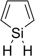 Siloles, also called silacyclopentadienes, are members of a larger class of compounds called metalloles. They are the silicon analogs of cyclopentadienes and are of current academic interest due to their electroluminescence and other electronic properties.[31][32] Siloles are efficient in electron transport. They owe their low lying LUMO to a favorable interaction between the antibonding sigma silicon orbital with an antibonding pi orbital of the butadiene fragment.