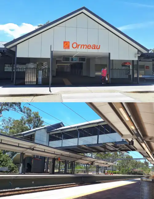 Ormeau station opened on 25 February 1996 when the Gold Coast line opened from Beenleigh to Helensvale.[1] It is currently the only station on the Gold Coast line with side platforms, but it will not be when the new stations, Pimpama, Hope Island, and Merrimac, open.