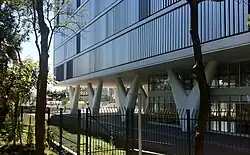 Although it was badly received and to an extent an exaggeration, Bill's words were effective in bringing to attention the mediocre architecture coming from less talented architects, who employed Niemeyer's vocabulary in the decorative fashion that Bill had criticised. Niemeyer himself admitted that for a certain period he had "handled too many commissions, executing them in a hurry, trusting the improvisational skills he believed to have".[33] The Califórnia Building (Edifício Califórnia) in São Paulo is an example. Usually neglected by its creator, it features the V piloti which had worked so well in isolated buildings, creating a different treatment to that space without the need for two separate structural systems as Corbusier had done in Marseille. Its use in a typical urban context was formalistic and even compromised the building's structural logic in that it required many different sized supports.[34]