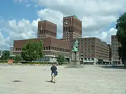 The main Olympic Village would be located in Bjørvika, on waterfront property in downtown Oslo.[16] In addition, a smaller Olympic village would be built in Hafjell. The Oslo village would have 3,000 rooms and 4,500 beds, while the Hafjell Village would have 700 rooms and 1,000 beds. As of 2007, the Oslo region has 10,500 hotel beds and the Lillehammer area 3,200 beds, most of which would be rented by the organizing committee.[17] Additional accommodation capacity could be generated by using 50,000 beds in cabins and rental apartments in the Lillehammer area and 10,000 hotel beds in a distance of 50 to 100 kilometers (30 to 60 mi) from the venues, and the use of cruise ships docked at the Port of Oslo.[18] The media center and international broadcasting center were to be located at Lohavn, with media accommodation being located at Lohavn and Filipstad. All Oslo accommodation and media facilities are part of the Fjord City project. Opening, closing and medal ceremonies in Oslo would be held at Rådhusplassen, a square in the city center. In Lillehammer, the medal ceremonies would have been located at Stortorget, the main square in the town.[12]