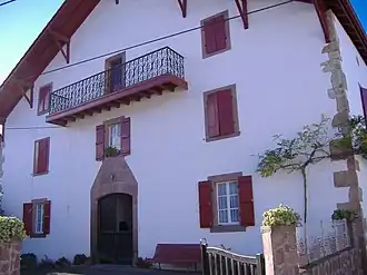 The village has a splendid sixteenth century church, St-Julien, with a unique heptagonal tower, a famous altarpiece and a pelota fronton forming one of its walls. The graveyard has a small number of stone Basque crosses. There are several traditional Basque houses around the square, characterised by their pink sandstone lintels and half-timbers, including the 1628 Maison Sastriarena, where the Bishops of Bayonne were entertained, and the Maison Harizmendi, where the prelate who married Louis XIV and Maria Theresa stayed in 1660 on his way to the wedding party. The old laundry building has also been preserved.