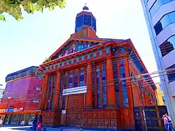 The Our Lady of Mount Carmel Cathedral[1] (Spanish: Catedral de la Virgen del Carmen) Also Puerto Montt Cathedral[2] Is a cathedral church of Catholic worship dedicated to the Virgin Mary under the invocation of Our Lady of the Carmen (Mount Carmel). It is located in the Plaza de Armas of Puerto Montt, and is the seat of the archbishop of the Archdiocese of Puerto Montt in Chile.[3]