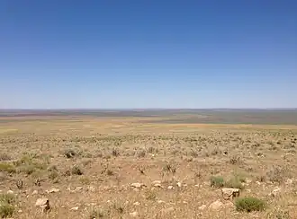 An arid region of canyons, volcanic rock, sagebrush and grass makes up the ~9,375 sq mi (24,280 km2) Owyhee Desert.[2]