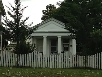 In 1840, Paine moved to Niles and opened an agency there. In 1843, he constructed this small Greek Revival bank building on the corner of Third and Main Streets. He also constructed a home nearby (now the Ring Lardner House). Paine's bank operated as an agency of the Farmers & Mechanics Bank until 1852, after which if became a private bank, known as Paine's Bank, owned and operated by Rodney C. Paine. Paine worked at promoting the development of Niles, investing in local industry, serving as the director of the public schools, and being elected to the state senate in 1855. Paine died in 1875.[2]