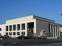 La Palazzina Reale of Santa Maria Novella is a modern, white marble palace built in a sleek Fascist-style, located along via Valfonda and Via Berardi, adjacent to the main Train Station at Santa Maria Novella in Florence, region of Tuscany, Italy. Built in 1934-1935 to house the royal family on their visits to Florence; after recent refurbishment, the building since 2015 houses the Casa dell'Architettura di Firenze (Architecture Society of Florence).
