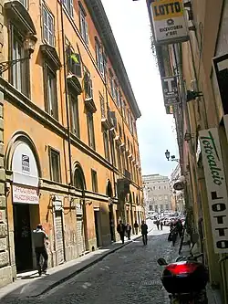 The Palazzo Muti (officially the Palazzo Muti e Santuario della Madonna dell' Archetto) is a large townhouse in the Piazza dei Santi Apostoli, Rome, Italy, built in 1644. Together with the neighboring Palazzo Muti Papazzurri, it originally formed part of a complex of adjoining palazzi and other houses owned by the Muti Papazzurri family. During the 18th century this entire range of buildings was, by courtesy of the pope, the residence of the House of Stuart government in exile in Rome. They were recognised by the Catholic Church and the Jacobite movement as the rightful kings of Great Britain and Ireland. The Palazzo Muti should not be confused with the Palazzo Muti Papazzurri in the Piazzo della Pilotta which was designed by Mattia de' Rossi in 1660.