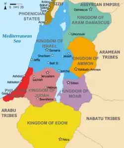The Israelites emerged from a dramatic social transformation that took place in the people of the central hill country of Canaan around 1200 BCE, with no signs of violent invasion or even of peaceful infiltration of a clearly defined ethnic group from elsewhere.[52][xiii] During the Iron Age, the Israelites established two related kingdoms, Israel and Judah. The Kingdom of Israel emerged as an important local power by the 10th century BCE before falling to the Neo-Assyrian Empire in 722 BCE. Israel's southern neighbor, the Kingdom of Judah, emerged in the 8th or 9th century BCE and later became a client state of first the Neo-Assyrian and then the Neo-Babylonian Empire before a revolt against the latter led to its destruction in 586 BCE. The region became part of the Neo-Assyrian Empire from c. 740 BCE,[53] which was itself replaced by the Neo-Babylonian Empire in c. 627 BCE.[54]