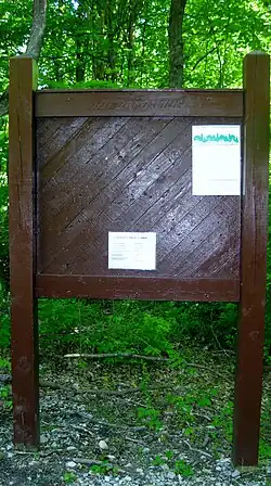 Like all National Wilderness Areas, no mechanized vehicles are allowed within Panther Den Wilderness. Since the network of trails is designed only for foot and equestrian traffic, it includes mostly class II trails.[6] Many of the trails that have been in use since before Panther Den was designated as a wilderness area are actually former abandoned roads. Many of the trails are heavily impacted due to overuse by horseback riders and hikers. As of 2012, new trails are being constructed to let the environment restore some of the old trails to a more natural condition. There are many options for day hikes, as well as camping. However, users are encouraged by the US Forest Service to not use many of the user created campsites scattered around the wilderness area. Many of these highly impacted areas are located within 300 feet of the trail, which is considered too close by many wilderness education organizations such as Leave No Trace. The main hiking loop is the Panther Den Loop and intersects with a section of the River to River trail. Panther Den Wilderness is located in the Lick Creek quadrangle, inside Union County, just below the Williamson County border. The highest point is at an elevation of approximately 700 feet. Panther Den Wilderness gets its name from its main attraction, Panther Den, which is a large sandstone rock formation with large crevices providing many opportunities for bouldering and exploration.