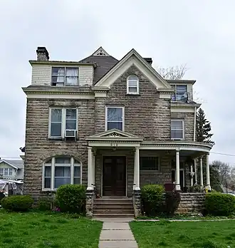 The Paradise Block Historic District is a nationally recognized historic district located in Oskaloosa, Iowa, United States. It was listed on the National Register of Historic Places in 1991.[1] At the time of its nomination it contained 43 resources, which included 26 residences, two churches, 12 garages, two brick driveways, and a vacant lot. Of these, 35 are considered contributing properties. The eight non-contributing properties include the vacant lot, two houses and a garage built after 1935, and four otherwise historic houses that have been significantly altered and have lost significant architectural elements.[2] The contributing properties were built between 1853 and 1917, with 15 of them being built between 1880 and 1900. Two of the houses, the Smith-Johnson House (1853) and the Seeberger-Loring-Kilburn House (1859), are individually listed on the National Register. The churches include the First Church of Christ, Scientist (1912), a Neoclassical structure covered with stucco, and St. Paul Congregational United Church of Christ (1914), a Neoclassical brick structure.