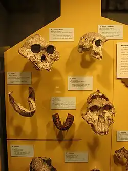 - ^ Suwa, G.; Asfaw, B.; Beyene, Y.; White, T. D.; et al. (1997). "The first skull of Australopithecus boisei". Nature. 389 (6650): 489–492. Bibcode:1997Natur.389..489S. doi:10.1038/39037. PMID 9333236. S2CID 205026898.