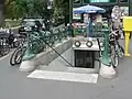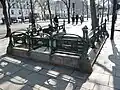 Ninety-one Guimard entrances survived until 1970.[20] Eighty-six are still extant and protected as historical monuments; six were protected in 1965, the remainder in 1978.[27] These include two original Type B édicules: at Porte Dauphine, on its original site and with the wall panels, and at Abbesses (moved from Hôtel de Ville in 1974). A third Type B of varying form at Châtelet is a 2000 recreation.[8] The remainder of the preserved entrances are simple enclosures or entourages, with or without the light and sign arch. In addition, two sides of an entourage form an entryway to the headquarters building of the RATP.