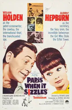 Paris When It Sizzles is a 1964 American romantic comedy film directed by Richard Quine from a screenplay by George Axelrod, based on the 1952 French film Holiday for Henrietta by Julien Duvivier and Henri Jeanson. The film stars William Holden and Audrey Hepburn, with Grégoire Aslan, Raymond Bussières, Noël Coward, and Tony Curtis.