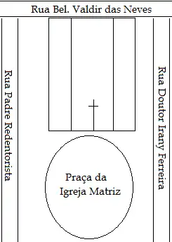 The Parish Church of Trindade is located in the Sanctuary Square, in the same area where the gold prospectors Ana Rosa and Constantino Xavier displayed the medallion they found at the disposal of tourists who wished to express their faith. The temple is located between Padre Redentorista Street and Doutor Irany Ferreira Street, in the Vila Santa Inês neighborhood; behind it, it intersects Bacharel Valdir José das Neves Street.[23] The church has a symmetrical and identical facade as seen from the square as well as from the street behind. Besides the two main entrances, there are six other entrances on the side wings; three on each.[24]
