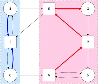 In other words, one starts with the initial set U. Then, for each step () one adds all nodes belonging to player 0 that can reach the previous set () with a single edge and all nodes belonging to player 1 that must reach the previous set () no matter which edge player 1 takes.