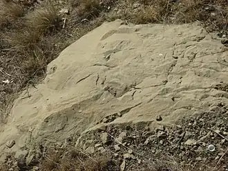 The Paskapoo rests on the Scollard Formation in the Alberta plains, and on the equivalent Coalspur Formation in the Alberta foothills.[11] The lower boundary has been defined as the erosional base of the first prominent sandstone above the Ardley coal zone of the Scollard Formation.[12] It has been established that, in the type area near Red Deer, this erosional surface represents a hiatus of about 1–2 million years.[6] In the foothills, the contact with the underlying Coalspur Formation is less distinctive but is again placed at the base of the first dominantly sandstone unit overlying a dominantly coal and mudstone unit.[10]