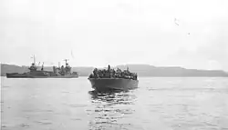 PT-109 entering Tulagi carrying 94 survivors from the sunken heavy cruiser USS Northampton