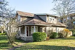 The Stratton House is a 1.5-story Vernacular Craftsman bungalow built in 1911 in Eugene, Oregon. Vernacular architecture is a designation that indicates the local or folk use of style and materials. The house was designed and constructed by Louis H. E. Stratton for Sarah Patterson, a rental property owner. Patterson rented the house to Stratton until 1920, when records show that he became the owner.[1]