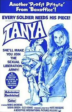 Tanya is a low-budget 1976 comedy film directed by Nate Rodgers and loosely based on the experiences of Patricia Hearst. The lead character, Charlotte Kane, is 20-year-old heiress of a newspaper mogul. She is kidnapped by five sex-crazed pseudo-revolutionaries who call themselves "The Symphonic Liberation Army" (a parody of the Symbionese Liberation Army). Charlotte is quickly converted to their cause and changes her name to Tanya.