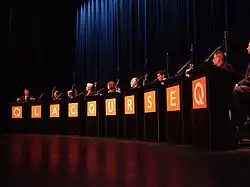 As Premier, Marois closed down Quebec's only nuclear reactor and ended asbestos production in Quebec. Her government's highest profile initiative was the proposal of a controversial Quebec Charter of Values which would have banned the province's 600,000 government employees from wearing religious symbols including turbans, Islamic veils and Jewish kippahs.[8] However, the crucifix (notably, the one hung by above the speaker's chair in the provincial legislature) would not have been banned under the Quebec Charter of Values.[11] Her party was defeated 19 months later in the 2014 Quebec general election, an election that she herself had called.[12] Marois was personally defeated in the riding of Charlevoix–Côte-de-Beaupré and announced thereafter her resignation as PQ leader.[13][14] Her electoral defeat marked the shortest stay of any Quebec provincial government since the Canadian Confederation and the lowest showing for the PQ since its first general election in 1970.[15][16]