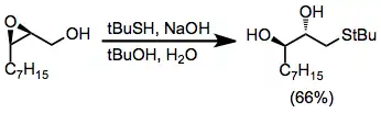 Under aprotic conditions, nucleophilic opening of epoxide isomers can be achieved with hydrides or organocuprates. Nucleophilic attack generally takes place at the least substituted carbon, yielding the more substituted diol product.[10]