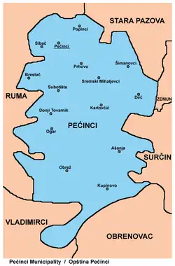 - ^ "Пословник Општине Пећинци, Члан 4" [Pećinci Municipality Rules of Procedure, Article 4] (PDF) (in Serbian). Official Gazette of the Syrmian Municipalities. Retrieved 16 February 2025.