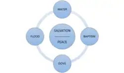 Diagram showing the relationship between the Flood, baptism, water, peace and the dove in early Christian thinking