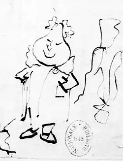 In April 1830, La Silhouette published Un jésuite, a vignette by Philipon depicting Charles X.[58] The caricature represented the liberals' opposition to the ultra-royalists, with Jesuitism serving as a symbol of their political stance.[59] The illustration was discreetly placed within the publication to avoid censorship.[60] Following the release, the issue was seized, and at the trial, the prosecutor argued that the image unmistakably depicted the King.[61][62] The deputy director of the publication, Benjamin-Louis Bellet, fined and sentenced to six months in prison, while Philipon, who had not signed the caricature, avoided punishment.[63] Despite this, the incident helped establish Philipon’s reputation as a political caricaturist.[64][N 5][63]