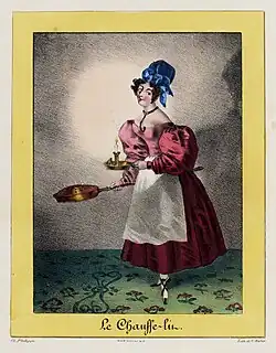Charles Philipon was born in Lyon in 1800, the son of a wallpaper merchant. At the age of 23, he moved to Paris to pursue an artistic career.[47] To support himself, he initially worked for image makers on Rue Saint-Jacques and for manufacturers of labels and rebuses, illustrating numerous affordable story sheets.[48] From 1824 onward, he began studying lithography[49] while specializing in producing individual works, which were sold as separate sheets.[50] His early works were focused on popular subjects, including fashion series, caricatures of manners, and comic advertisements, although they did not stand out as exceptional.[51]