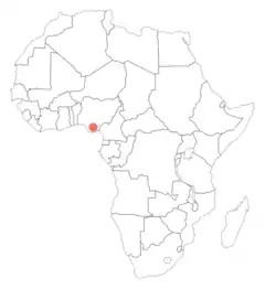 This species is only known from the Niger and Cross river systems in the southeastern parts of Nigeria. The neotype was collected at Chokoche, Imo River, Rivers State, 04° 59' N, 07° 59' E[3]