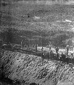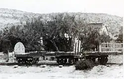 Engineer Mr. Belcridi was hired to a study and project of the railway line.[2] During the works, a big camp was installed to host workers and their families while works were carried out.[3] tracks were placed at first, then continuing with the buildings. A hotel, the headquarters, the fuel depot, a workshop and a warehouse to store tracks were built, apart from the post office and the houses for locomotive drivers and other workers.[2]