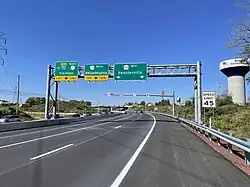 In 2005, a bill was introduced into the Pennsylvania General Assembly designating the entire length of PA 132 as the Armed Forces and Veterans Memorial Highway; this bill was signed into law by Governor Ed Rendell on October 27, 2006.[33][34] On May 28, 2007, PA 132 was officially named the Armed Forces and Veterans Memorial Highway in a ceremony held in Warminster, with State Representative Kathy Watson in attendance.[35] On November 22, 2010, a ramp with access to and from the eastbound Pennsylvania Turnpike in Bensalem Township opened, intended to provide improved access to Parx Casino and Racing and reduce congestion at the Pennsylvania Turnpike interchange with US 1.[36] The intersection of PA 132 and Knights Road in Bensalem Township was ranked by Time magazine as the most dangerous intersection in the United States from 2003 until 2012.[37]