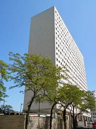The Pennsylvania State Office Building is a historic office building located in the Hahnemann neighborhood of Philadelphia, Pennsylvania. It was built between 1957 and 1958, and is an 18-story, steel frame and reinforced concrete building.