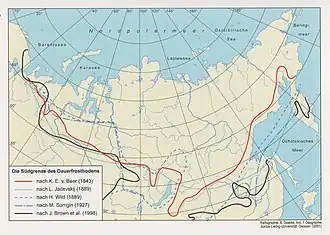 129. ^ a b c King, Lorenz (2001). "Materialien zur Kenntniss des unvergänglichen Boden-Eises in Sibirien, compiled by Baer in 1843" (PDF). Berichte und Arbeiten aus der Universitätsbibliothek und dem Universitätsarchiv Giessen (in German). 51: 1–315. Retrieved 27 July 2021.