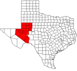 ![]() Map of Texas highlighting counties served by the Permian Basin Regional Planning Commission | |