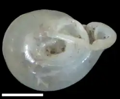 | Shell of holotype of Perrottetia hongthinhae. Scale bar is 2 mm. | |