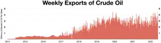 Crude oil exports by the United States, 1920–2022