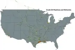 Crude oil pipelines and refineries