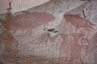 Rock art includes both humanoid and animal figures like the Giant Mekong Catfish | |
