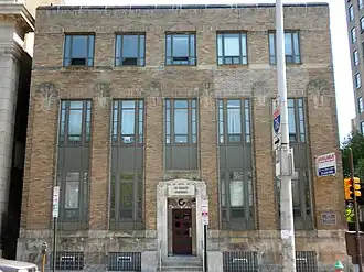 The front facade features sculptural iron panels, sandstone carvings, and two-story brick pilasters with decorative caps. The Philadelphia School of Occupational Therapy occupied the building into the late-1950s, after which it housed medical offices associated with the University of Pennsylvania.[5] It has been converted to apartments.