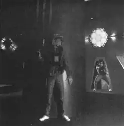 While primitive compared to technology today, entailing wearing 15 pounds of battery packs and equipment, Photon was one of the first video game-like experiences that one could play in the real world.[1] The arenas featured multiple levels, catwalks, mazes, and an observation deck where people not participating could cheer on their friends in the game, or get target practice by shooting players from special token-operated emplacements. Shots from observation deck guns did not affect the game in any way at most arenas. This contrasted sharply with competing laser-tag centers, whose fields were small, single-level, composed of clusters of free-standing painted cardboard barriers, and typically contained no observation area of any sort. Also, in Photon, players were allowed to roam at will through the entire playing field rather than be restricted to team-specific zones.