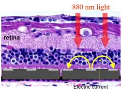 1. ^ Wang, Lele; et al. (2012). "Photovoltaic retinal prosthesis: Implant fabrication and performance". Journal of Neural Engineering. 9 (4): 046014. Bibcode:2012JNEng...9d6014W. doi:10.1088/1741-2560/9/4/046014. PMC 3419261. PMID 22791690.