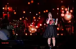 On the eve of its street date, Piece by Piece was prefaced by an album release party at the iHeartRadio Theater in New York City, a part of which was also simulcasted live on all iHeartRadio adult contemporary and contemporary hit radio stations across the United States.[35] Clarkson also performed "Heartbeat Song" in live televised performances, debuting it on the television program The Graham Norton Show on February 20, 2015,[36] and continuing with the programs Loose Women, The Tonight Show Starring Jimmy Fallon on March 2, 2015,[37][38] and on Good Morning America on March 3, 2015.[39] During her appearance on Good Morning America, Clarkson announced the first thirty-eight tour dates of her Piece by Piece Tour to support the album, which would begin in Hershey, Pennsylvania on July 11, 2015.[40]