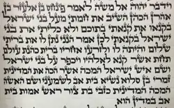 In the first reading, God announced that because Phinehas had displayed his passion for God, God granted him a pact of friendship and priesthood for all time.[4] (In a Torah scroll, the letter וֹ‎ in the verse "Behold, I give him My covenant of peace," is split.) God then told Moses to attack the Midianites to repay them for their trickery luring Israelite men to worship Baal Peor.[5]