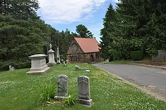 • The Rhodes Memorial Chapel, built in 1890.[5] It was built using a donation from a Ms. Amos Rhodes in a Richardsonian Romanesque style. The stained glass windows are valued at over $10,000.