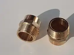 • a fitting that connects threaded and non-threaded pipe[13][14]