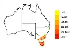 Pittosporum bicolor occurs statewide across Tasmania and the Bass Strait Islands. It is loosely restricted to the south easternmost parts of New South Wales and Victoria[1] (Figure 1).