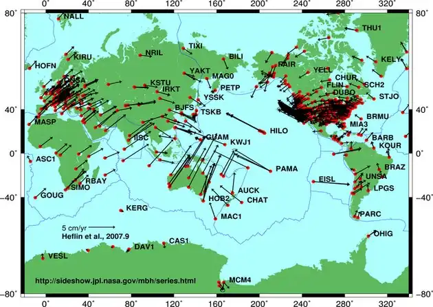 - Torsvik, Trond H.; Steinberger, Bernhard; Gurnis, Michael; Gaina, Carmen (2010). "Plate tectonics and net lithosphere rotation over the past 150 My" (PDF). Earth and Planetary Science Letters. 291 (1–4): 106–12. Bibcode:2010E&PSL.291..106T. doi:10.1016/j.epsl.2009.12.055. hdl:10852/62004. Archived from the original (PDF) on 2011-05-16. Retrieved 2010-06-18.