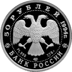 07.06.1994 5316-0003 50 rubles Proof 999/1000 7.88 (± 0.09) 7.78 20.0 (−0.15) 1.60 (± 0.15) 900