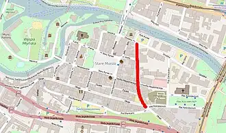 The street is located in the eastern part of the Old Town. It extends approximately on a north–south axis, from the Grodzka Street to Długa Street. It is 230m long.