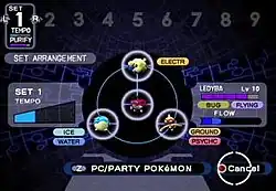 In the new "Purify Chamber" mode, the player arranges purified Pokémon around a Shadow Pokémon to purify the latter. Ideally, four purified Pokémon would be arranged in a clockwise fashion so that each would have a type advantage over the next. This would fill the "tempo" gauge and allow for most efficient purification.